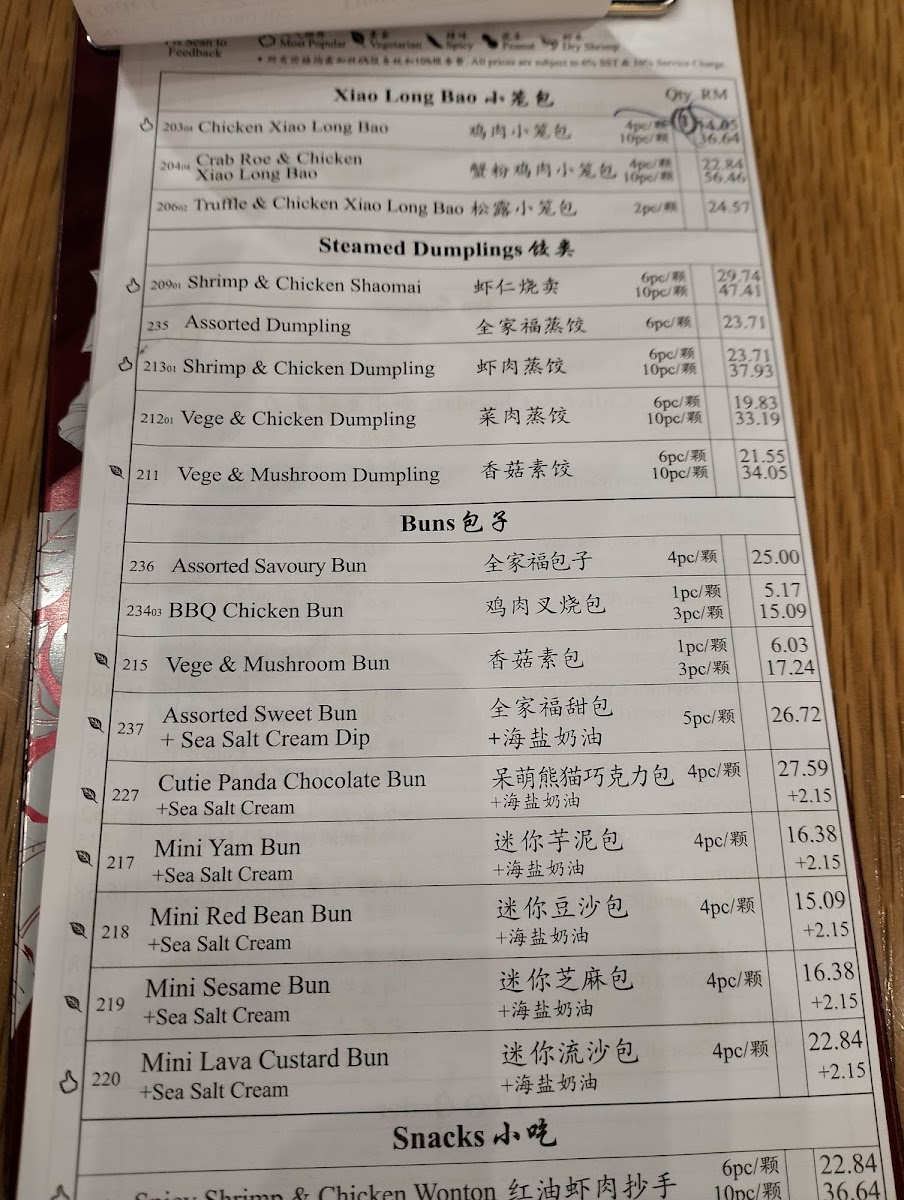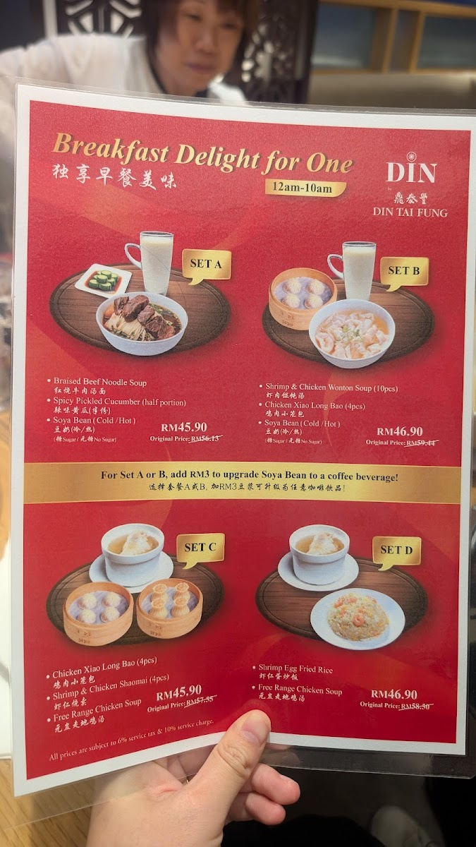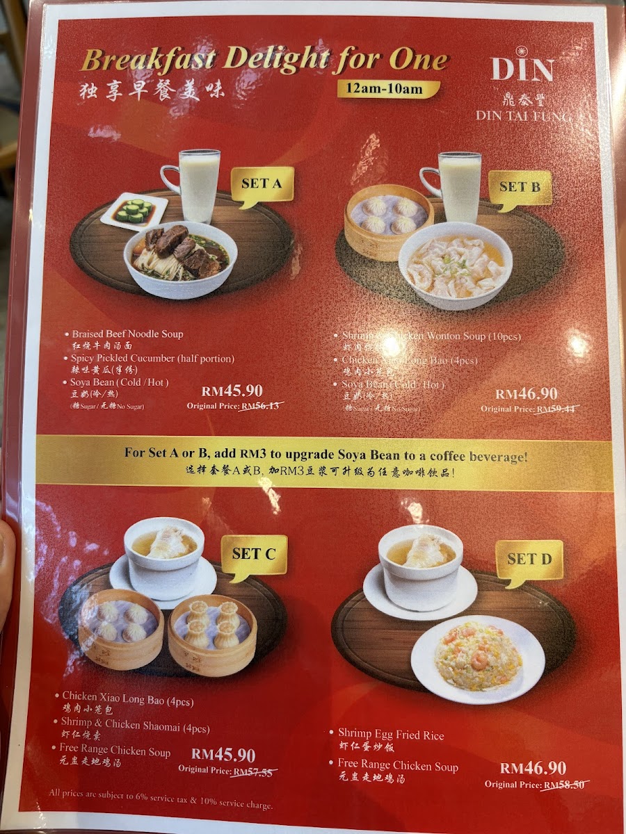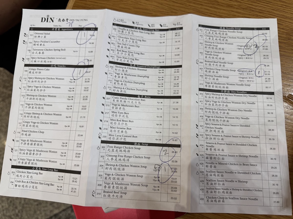 DIN by Din Tai Fung at KLIA Terminal 1 [No Pork No Lard] Menu